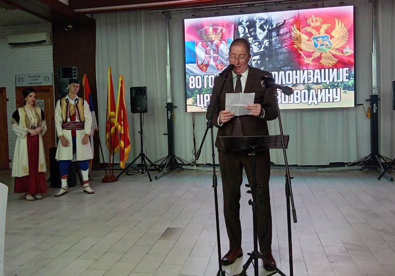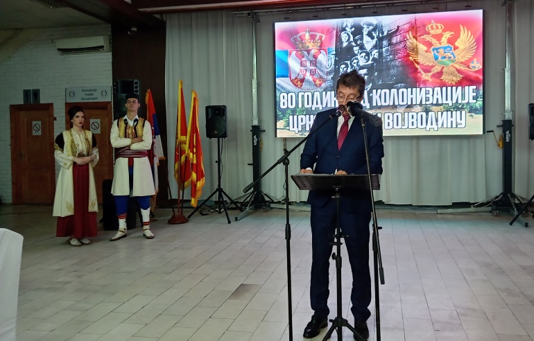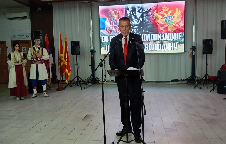 "Данас када славимо осам деценија од колонизације ми вреднујемо и афирмишемо подухват храбрих јунака и постојаних људи који су се из својих горштачких врлети отиснули да граде нов живот у честитој и питомој Војводини. Као што знате у периоду од 1945. до 1948. године у Војводину је насељено укупно 6.681 црногорска породица, што је износило 10% укупног становништва Црне Горе, односно 38.450 припадника наше заједнице.
